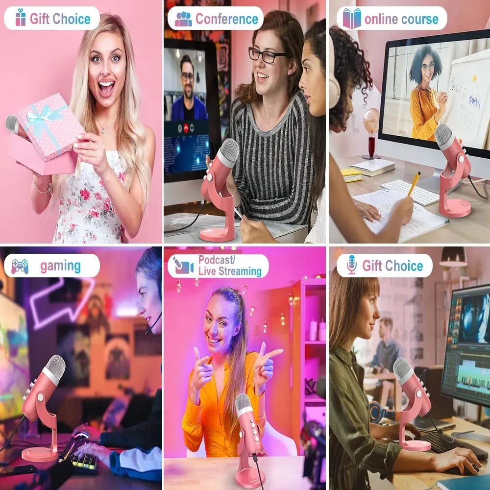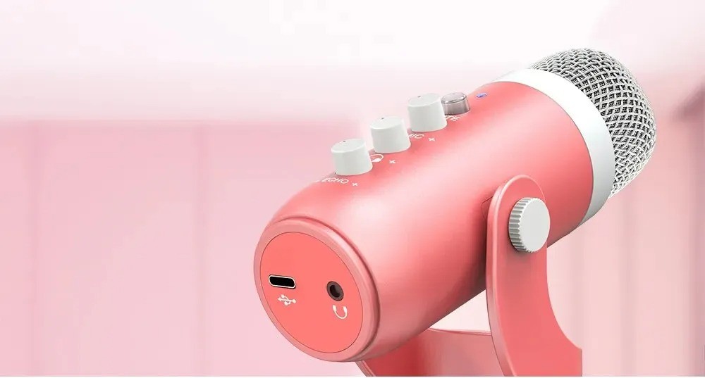 Le modèle USB présenté dispose de contrôles intégrés (mute, volume, écho), d’une puce DSP pour un son net, et d’une tête anti-bruit. Il peut tourner à 360° grâce à sa base robuste en métal.